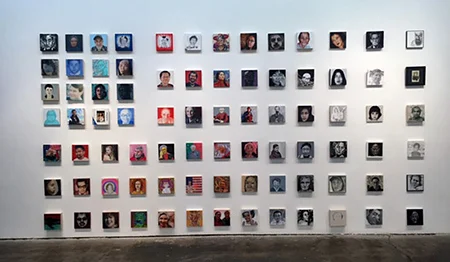 When Bay Area artist Monica Lundy and Los Angeles gallery-owner Walter Maciel organized the massive group exhibition With Liberty and Justice for Some, they had no idea how prescient it was. The show of 113 artists, which opened on Jan. 7 with the highest attendance Maciel has seen in his 11 years of operation, centers around a group of 82 8-by-8-inch portraits of immigrants, arranged to resemble an American flag. The symbolism is unavoidable.